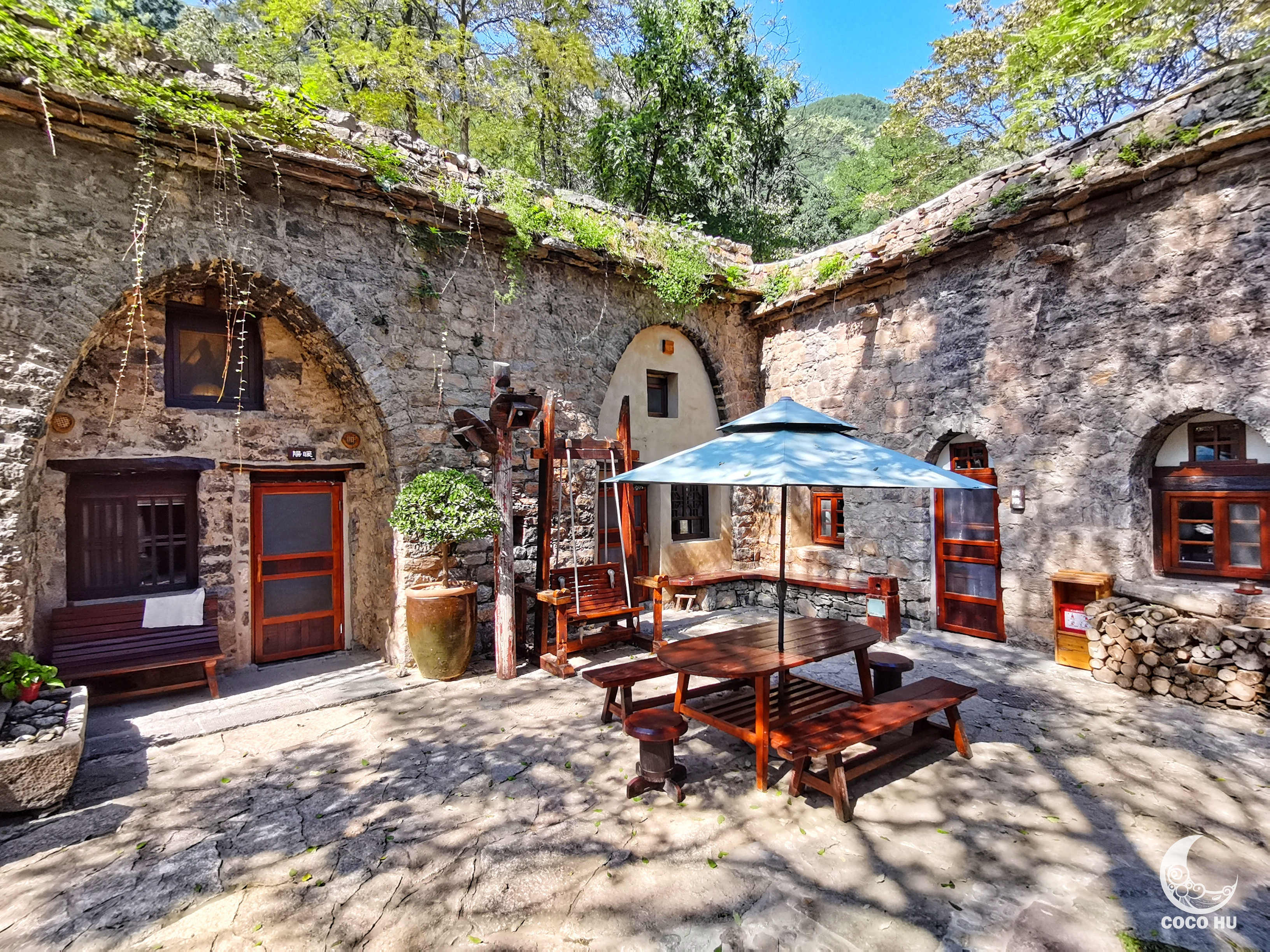 隐居在群山密林中的民宿,依地势和原有房屋做出改建。有适合大家庭居住的古村落传统窑洞小院儿,也有相对现代化的度假房型。每栋都各有特色,满是风景。热热闹闹的小院儿里,大家都能回归到最本真的心境,一种《向往的生活》既视感,赫然展现在康家坪的每一栋小院儿里。