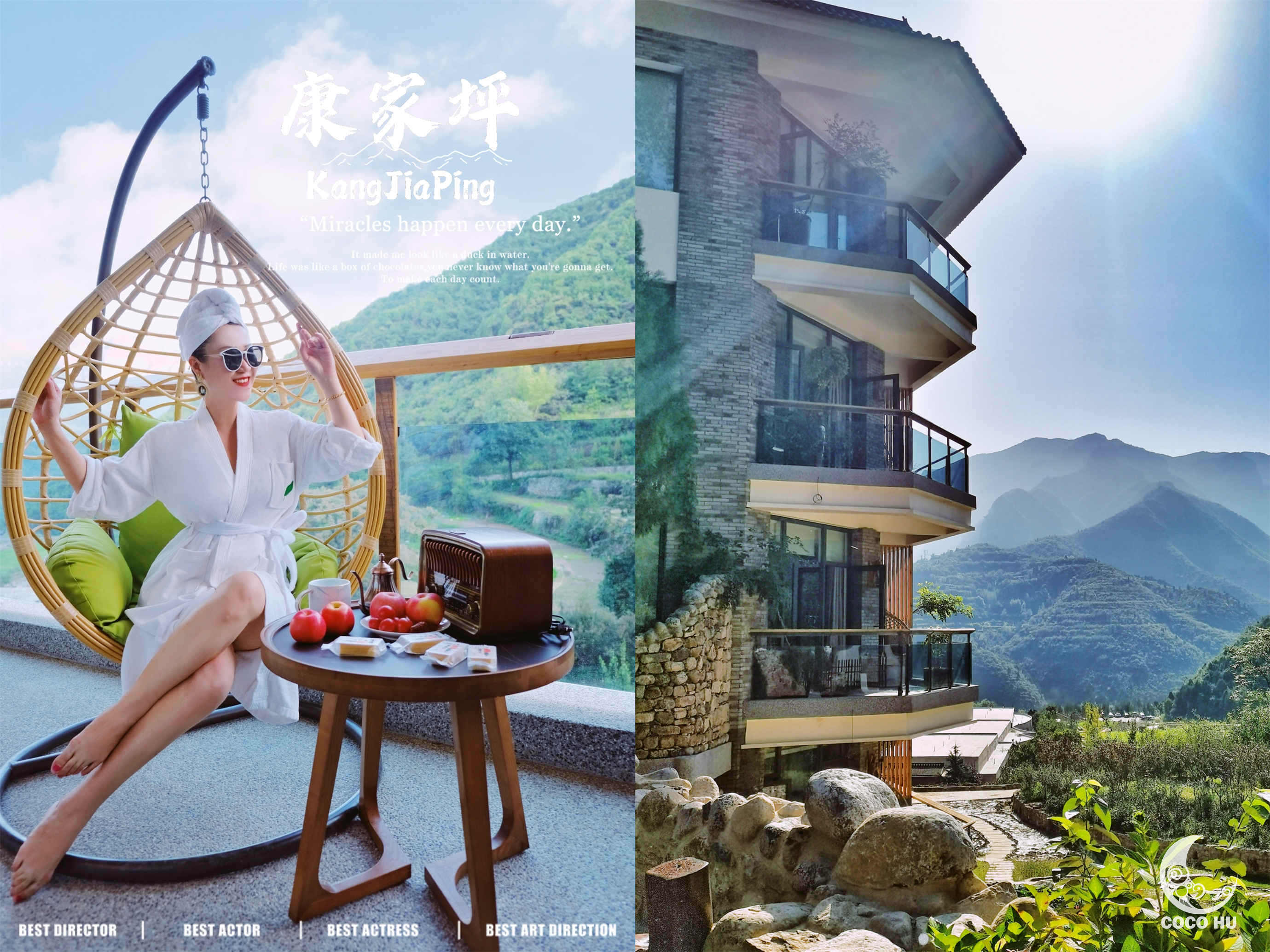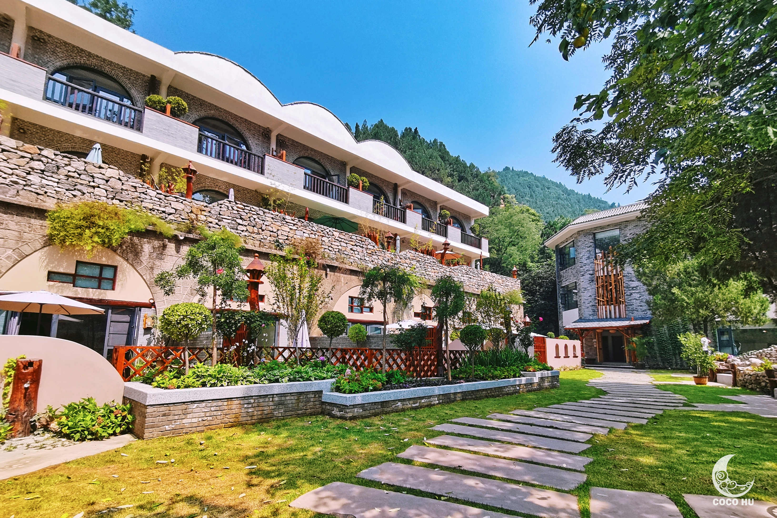 如果说轻野HOME给予游人的是一种孤独的美感,是一场与自己沟通的心灵之旅。那么景区内的另一处民宿,有着截然不同风格的康家坪,更适合大家庭和朋友出行。
