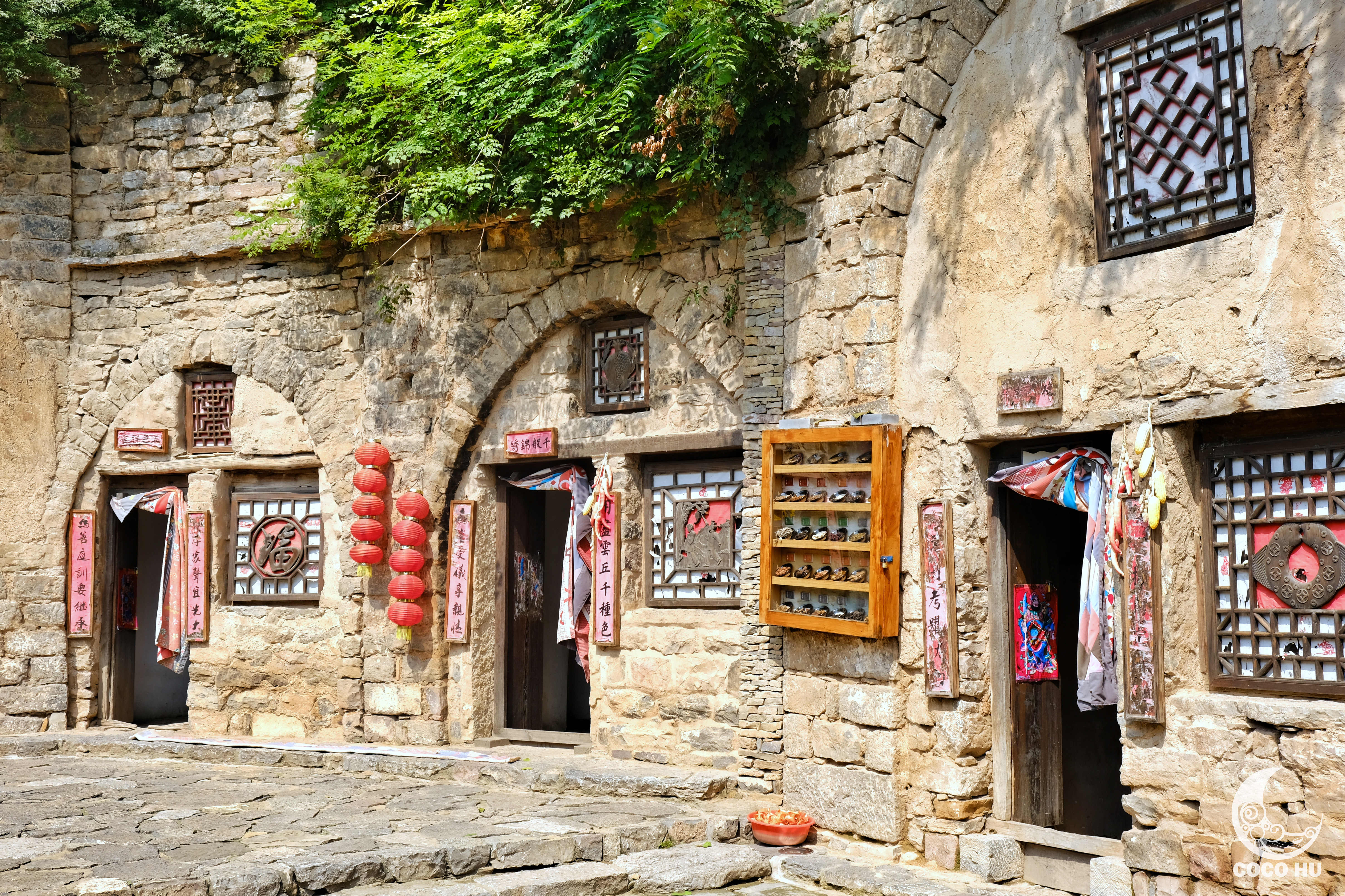 在这座距今2000多年历史的古村内,所有院落均是依山而建,建筑材料以石材为主。村落里有石拱顶的窑洞建构,也有在石砌拱顶的窑洞后依山挖掘的石洞、土洞,而房屋则为石砌墙体的抬梁木结构瓦厦,从空中俯瞰,层层叠叠,相当壮观。