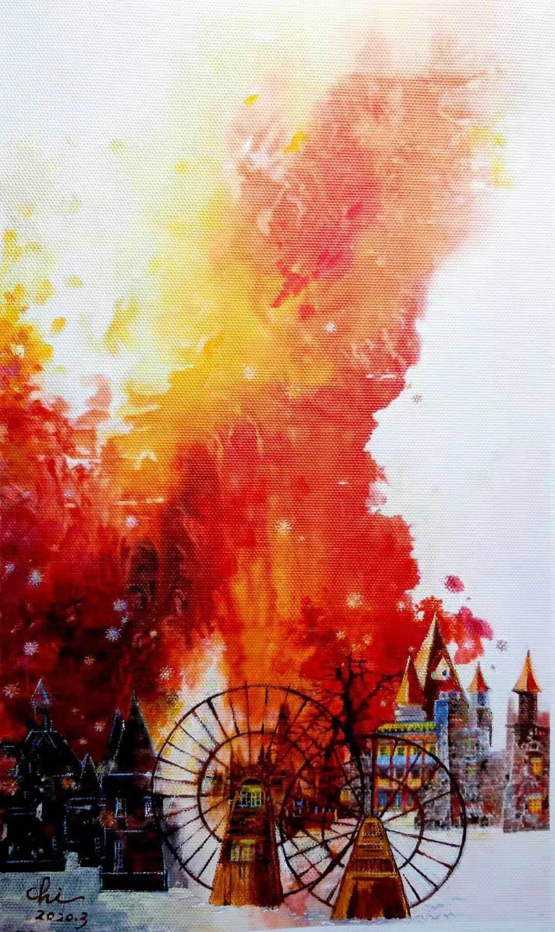 《疫火弥漫》尺寸:48x36cm