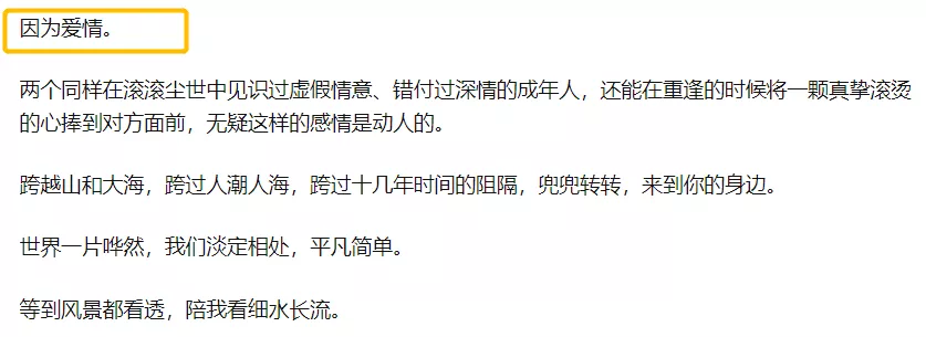 有人回答:因为爱情。