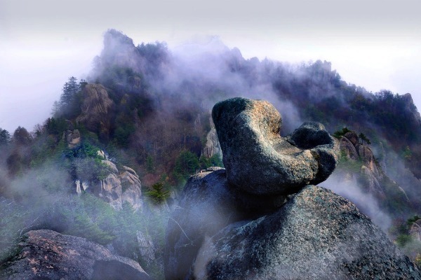 灵官峡是嘉陵江上游第一道峡谷,也是宝成铁路穿越秦岭的险段之一。峡内谷静幽深,滩清水碧,奇峰怪石姿态万千,两侧高耸的橙红色的石崖,陡峭险峻,层层叠叠,白色的雾气,从峡谷中一团一团的溢出,缓缓地漫上山坡,散成一片轻柔的薄沙,飘飘忽忽地笼罩着整个大峡谷。