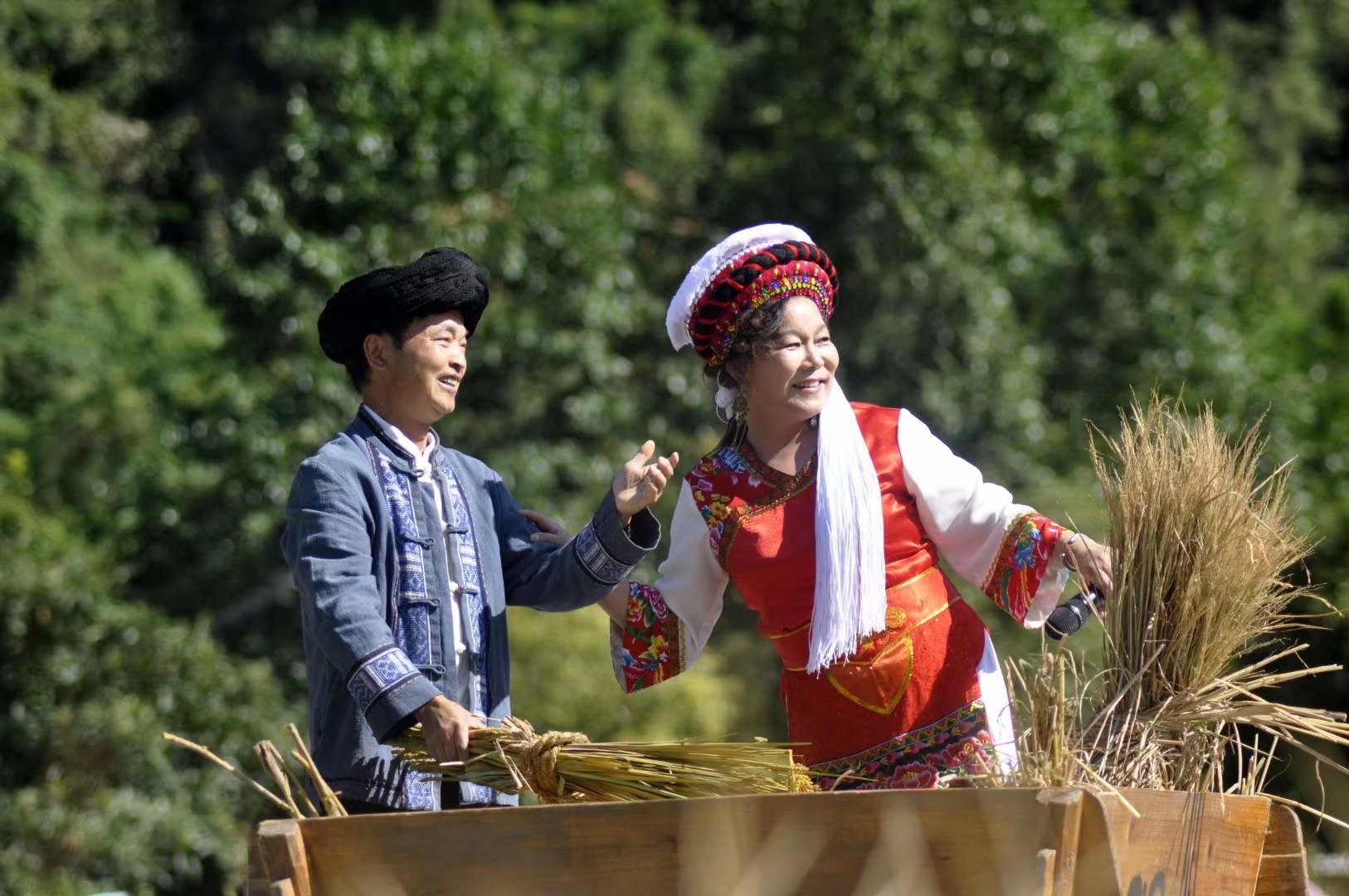 “这是我第一次站在田野上作致辞,我感到非常荣幸。我们平时都说要回归乡土,我们今天就站在乡土田野之上……”上午9:50,秋收节开幕式在欧阳斌副市长的致辞声中拉开帷幕,在数十名小朋友们的歌舞表演中热闹开场。国家级非物质文化遗产桑植民歌代表性传承人向佐绒、黄道英、尚生武连袂登台献唱了数首原汁原味的桑植民歌,黄龙洞景区的员工为大家带来了充满乡野气息的田园T台走秀.......最后,作为压轴节目的水稻收割比赛更是将活动带入了最高潮,火热的劳动场面让现场顿时呈现出一片欢乐喜庆的景象。