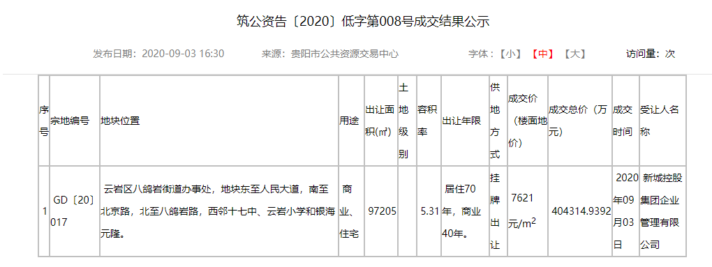 2020年9月,新城集团以40.4亿元拿下项目用地,正式落子云岩,成交楼面价高达7621元/平方米,为2020年之最。这是人民大道云岩段开发传闻中,首个落地的大项目,说是人民大道云岩段崛起的标志也不为过。
