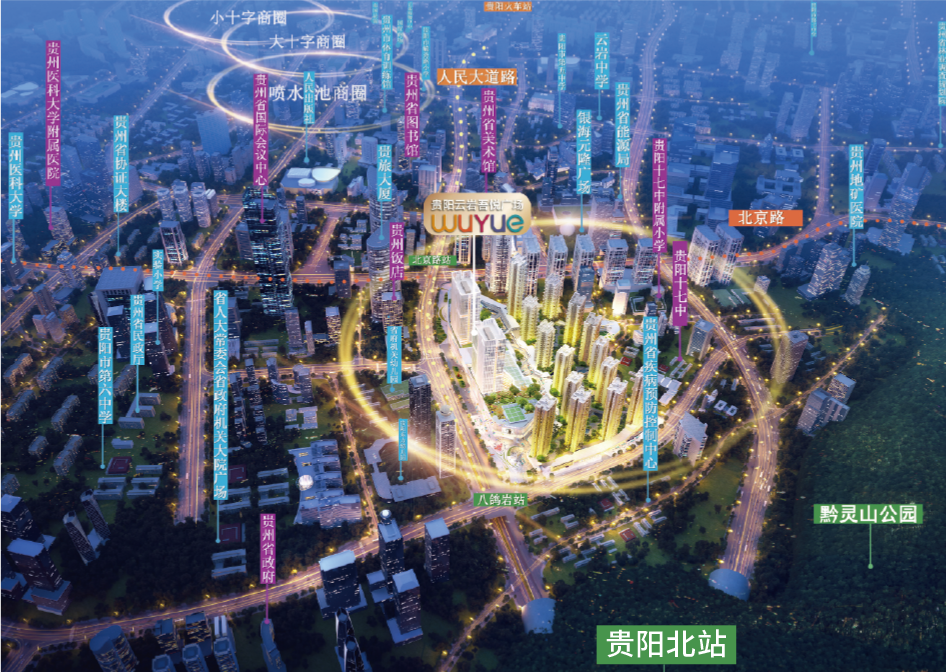 “老城中心、双地铁线、人民大道旁、黔灵山公园、贵医、十七中……”,光从区位来说,云岩吾悦广场拥有着便捷的交通、大量的城市资源,绝对的贵阳老城黄金地段之一。
