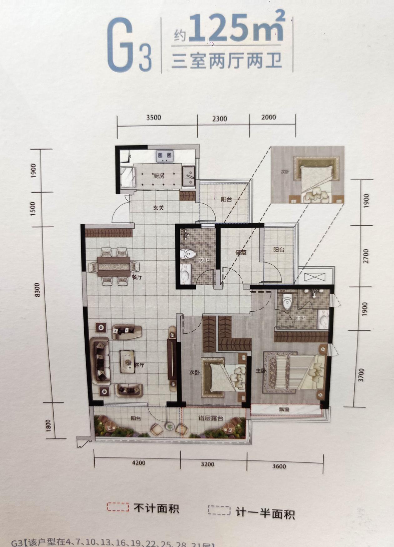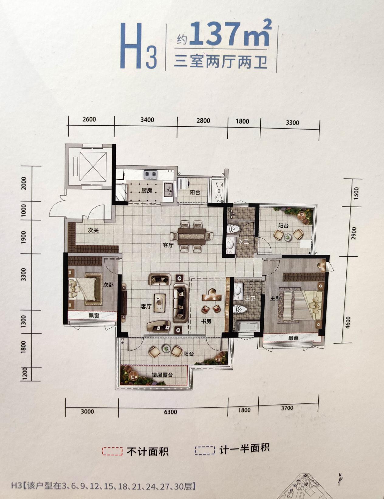 其中,125㎡的是两室两厅,137㎡的为三室两厅,两个户型都会附带露台和阳台,南北通透,每个户型都利用了一个阳台可以改造成一个房间。