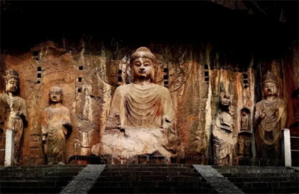 中国的石窟尽管时间、地域不同,但它们都以雕凿、彩绘、泥塑等生动自然的造像,留给后人极高的艺术享受和丰富的研究价值。位于洛阳城南5公里处的龙门石窟开凿于北魏(493年),历经了东魏、西魏、北齐、隋、唐、北宋诸朝,共计有400余年的雕刻历史。密如蜂巢般的石窟群就开凿于伊河两岸东西两山的崖壁之上,南北长达1公里。古代的艺术家运用了雕塑艺术语言,将佛、弟子、菩萨等形象刻画得形神兼备,栩栩如生;技法娴熟流畅,设计独具匠心。