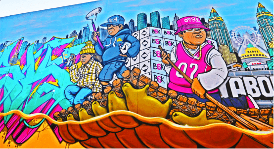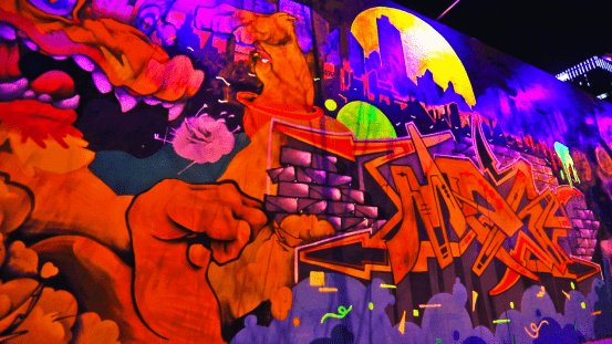涂鸦艺术几十年来,在费城、纽约、柏林、伦敦等国际城市逐渐流行,而在国内,广州、上海等一线城市涂鸦文化也萌动滋生,捕捉时代人文的精神,成为城市艺术创造的土壤。渗透于城市的肌理中,与之共生。从某种角度上讲,涂鸦宛如一面面城市的表情,与城市人与游客直接对话。