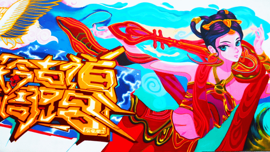 这座兰州主题涂鸦墙,成为青年艺术家放飞艺术情怀的平台。由小安、细菌、启草、sta2、紫灰、AST、jm、黑狗点、77、GROAS等十位涂鸦艺术家合力完成。涂鸦总面积约3000㎡,墙高约6米,总长度数百米,分为“进筑兰州”、“心流兰州”、“龙腾虎跃贺兰州”、“雄浑西北”、“驼岭古道丝绸路”等5大主题。