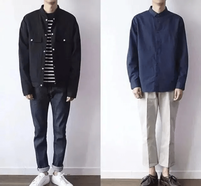 简约纯色系的蓝色与灰色呢大衣、衬衫或是西装外套,搭配高领毛衣和灰色黑色西裤,再来一双皮质鞋子,整体更加的简洁大方。