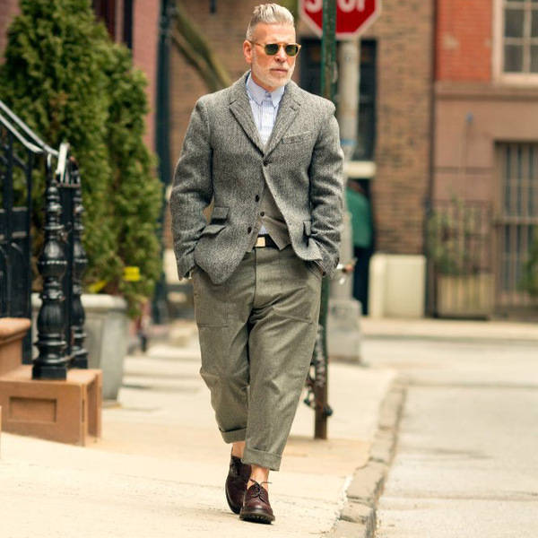 西装革履,精致品味的套西,搭配马甲、领带、衬衫、方巾、乐福鞋与皮鞋,精致体面又有生活品味,温文尔雅又不会太过复古!绅士风里,呢大衣的应用也是相对较广的!