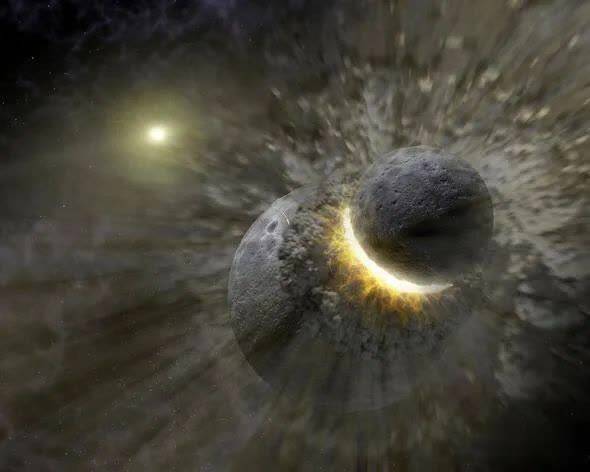行星撞击会产生大范围的碎片,包括尘云。