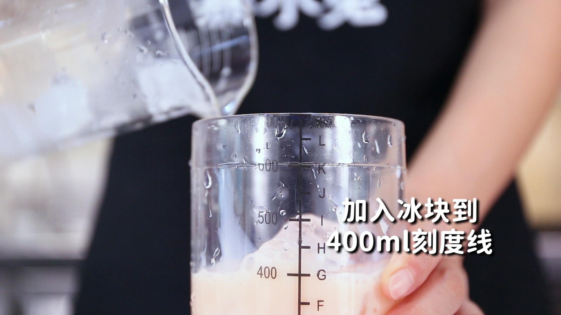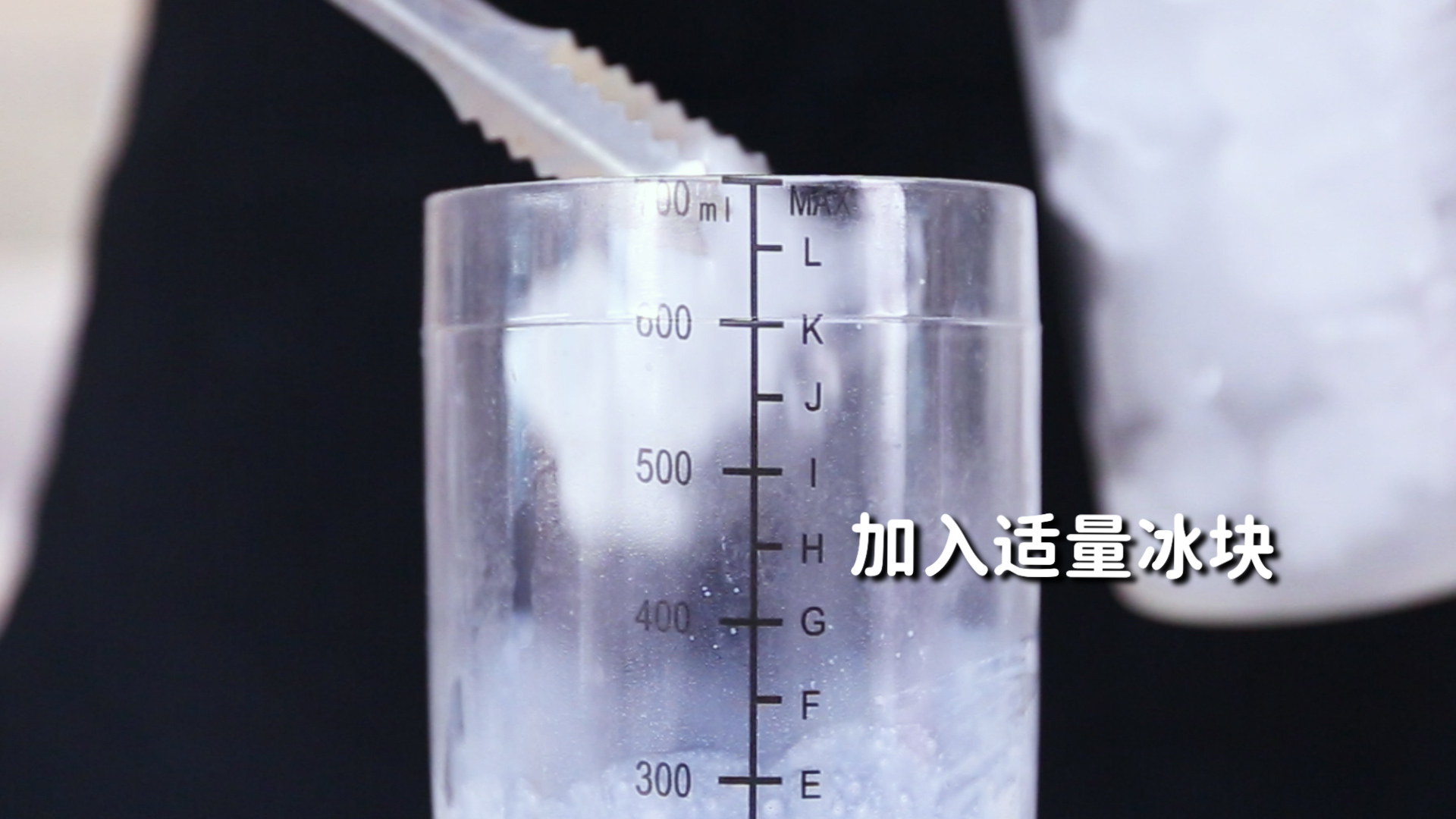 第3步:继续加入冰块到400ml的刻度线,然后雪克均匀