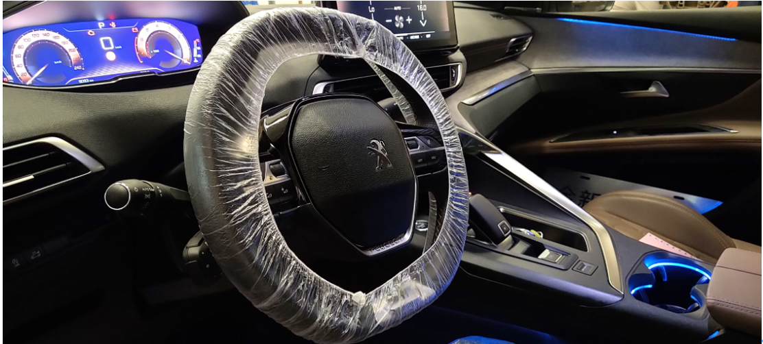 这次的保养是一次小保养,保养的师傅很专业,保养之前,先给方向盘和座椅套上防护套,主驾驶位置的脚踏部位放在垫子,以免影响到保养完后的车主使用。