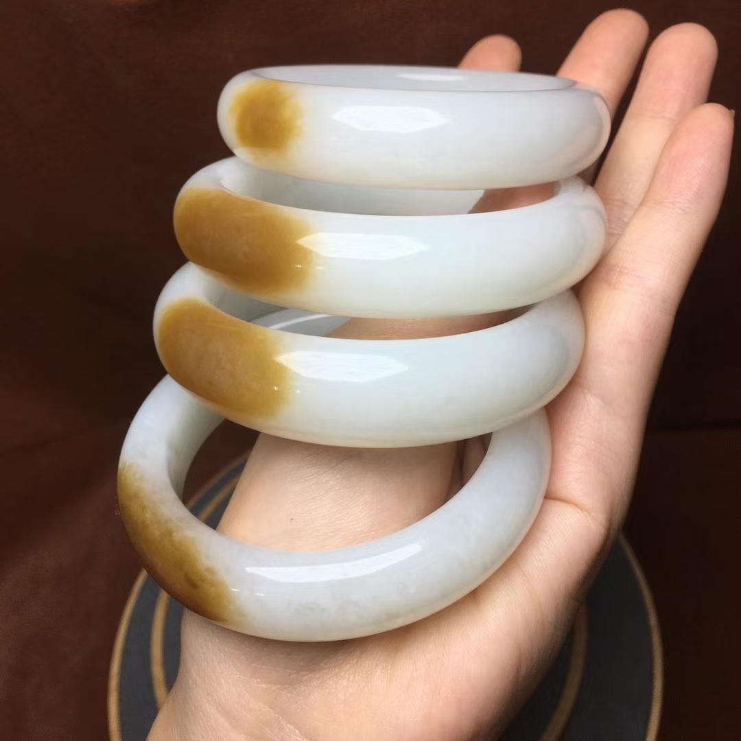 因为这个特性,糖玉可以做俏色雕刻,玉雕件灵巧生动。做手镯或者平安牌,一点糖色使得整个画面更显生动。
