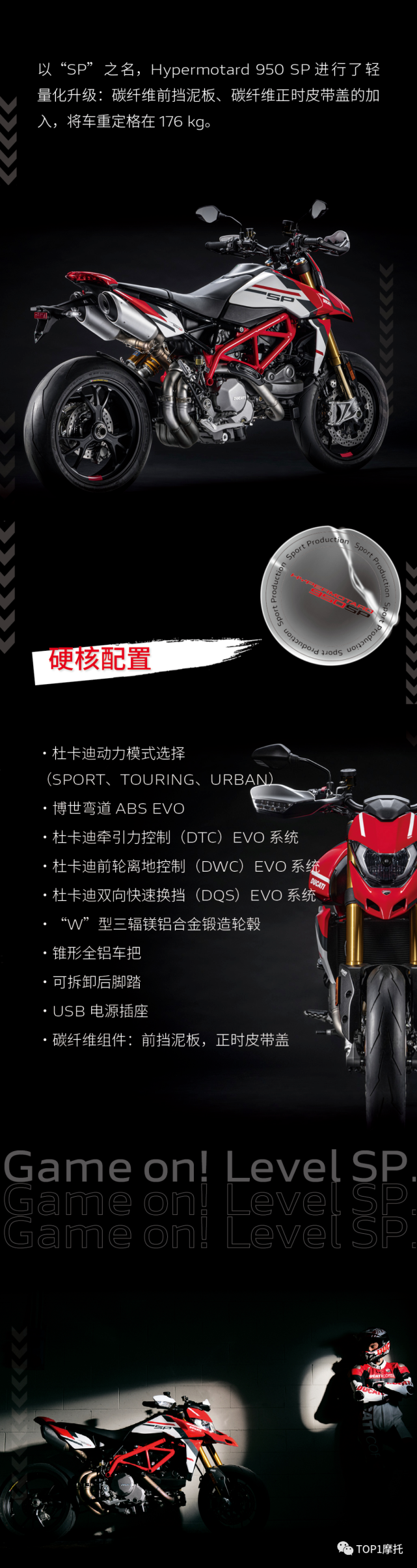 杜卡迪今天发布了Hypermotard 950的强化版,Hypermotard 950 SP售价17.3万元,而国内目前在售的普通版售价仅为13.5万元,SP版本贵了3.8万元!