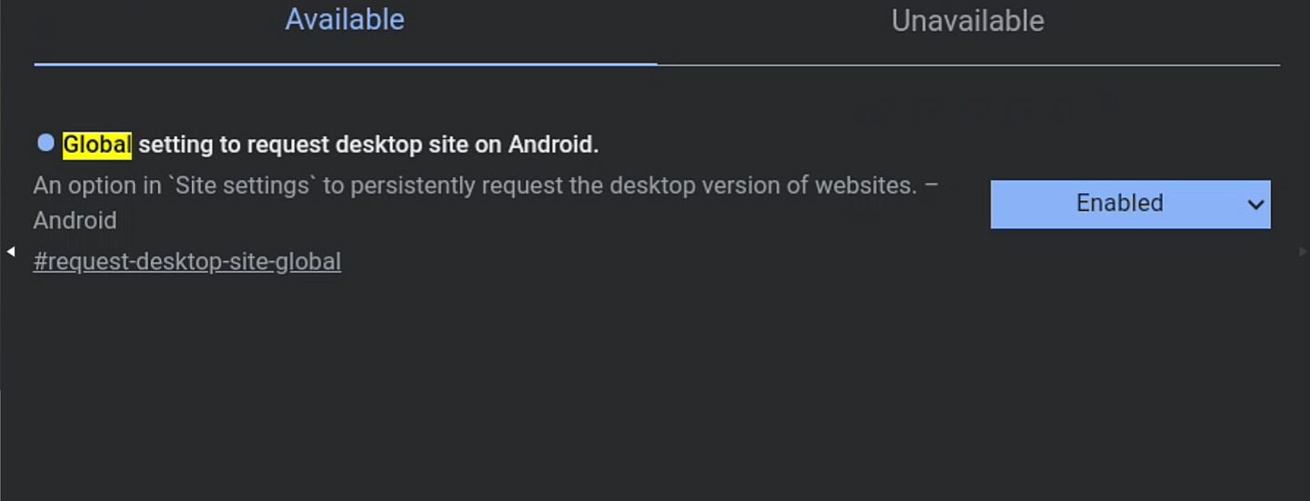 至于如何启用该功能,这需要用户首先在智能手机上安装 Chrome Canary 版本。此外,由于该功能需要激活一个 Flag,你必须启用一个名为“Global setting to request desktop site on Android”的 Flag。然后,你可以进入设置 > 网站设置 > 桌面网站。启用“桌面网站”开关,以使用该功能。