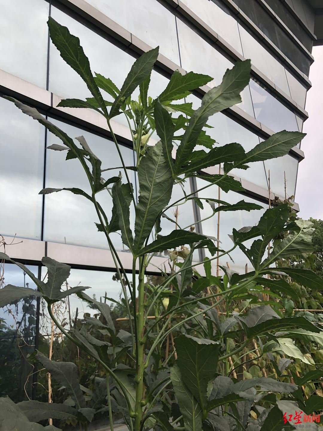 26日,红星新闻记者在成都市植物园科普馆的露台上,看到了该蔬菜园,几株1米多的植株上还有秋葵。成都市植物园工作人员介绍说,蔬菜是我们身边最常见的植物,也是最好的科普植物之一,是植物园实现科普教育职能的良好途径。