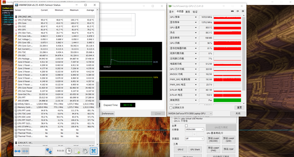 配有独立显卡的荣耀MagicBook 16 Pro锐龙版在GeForce RTX 3050和锐龙7 5800H处理器的加持下,能否火力全开是不少消费者关心的。接下来就进行CPU和GPU“双烤”测试,不仅要看硬件的性能表现,同时对散热能力提出了更高的要求。