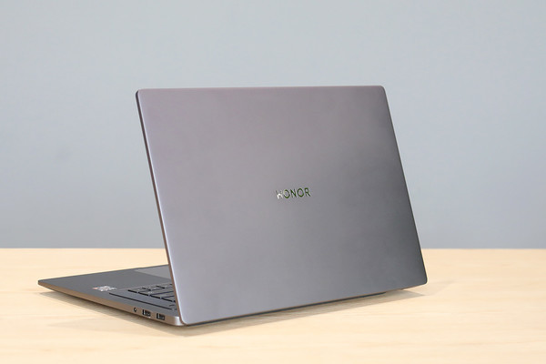 在A面通过“HONOR”品牌Logo进行点缀,让整机看起来简洁大方。在机身侧面还采用海浪腰线造型,显得十分有张力,同时也让笔记本显得比较轻保