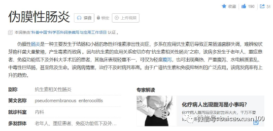 粪菌移植在近代应用于人类一般公认的说法是在1958年,而它的应用并不是用于“减肥”,而是用于治疗一种叫做伪膜性肠炎的消化道疾病,听起来没有什么,不就是消化系统疾病吗?你可不能小看这个“伪膜性肠炎”,它的致死率可高达75%,为什么这么高呢?我们百度一下就知道:它是一种因使用抗生素等原因所致的一种医源性疾病,对于重症患者西医常规治疗手段是难以奏效的。