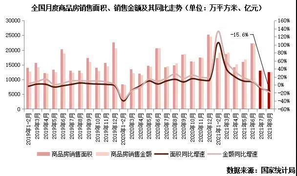 2021年8月,全国商品房销售额同比-18.7%。9月份40城一手房累计销售面积同比-16%,9月份17城二手房累计销售面积同比-35%。