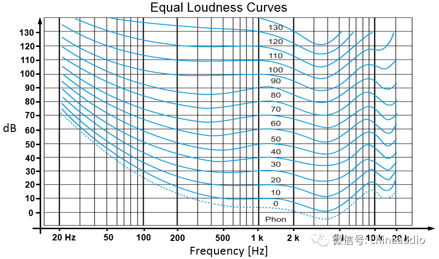 第二个,聆听的音量。为什么音量要列入考虑。因为人耳在辨识细节这件事情上,是有一个音量threshold。请见下图: