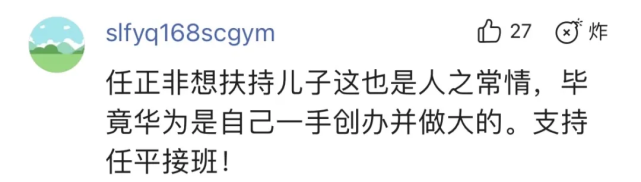 有网友支持任平接班,他们认为华为是任正非一手创办并做大的,他想扶持自己的儿子也是人之常情。