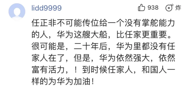 但也有一部分网友持反对意见,他们觉得任平资质平庸,没有特别强的掌舵能力,不适合接班,甚至他们更长远地想到:“华为这艘大船,比任家更重要,可能二十年后,华为里都没有任家人在了,但那个时候的华为依然强大。”