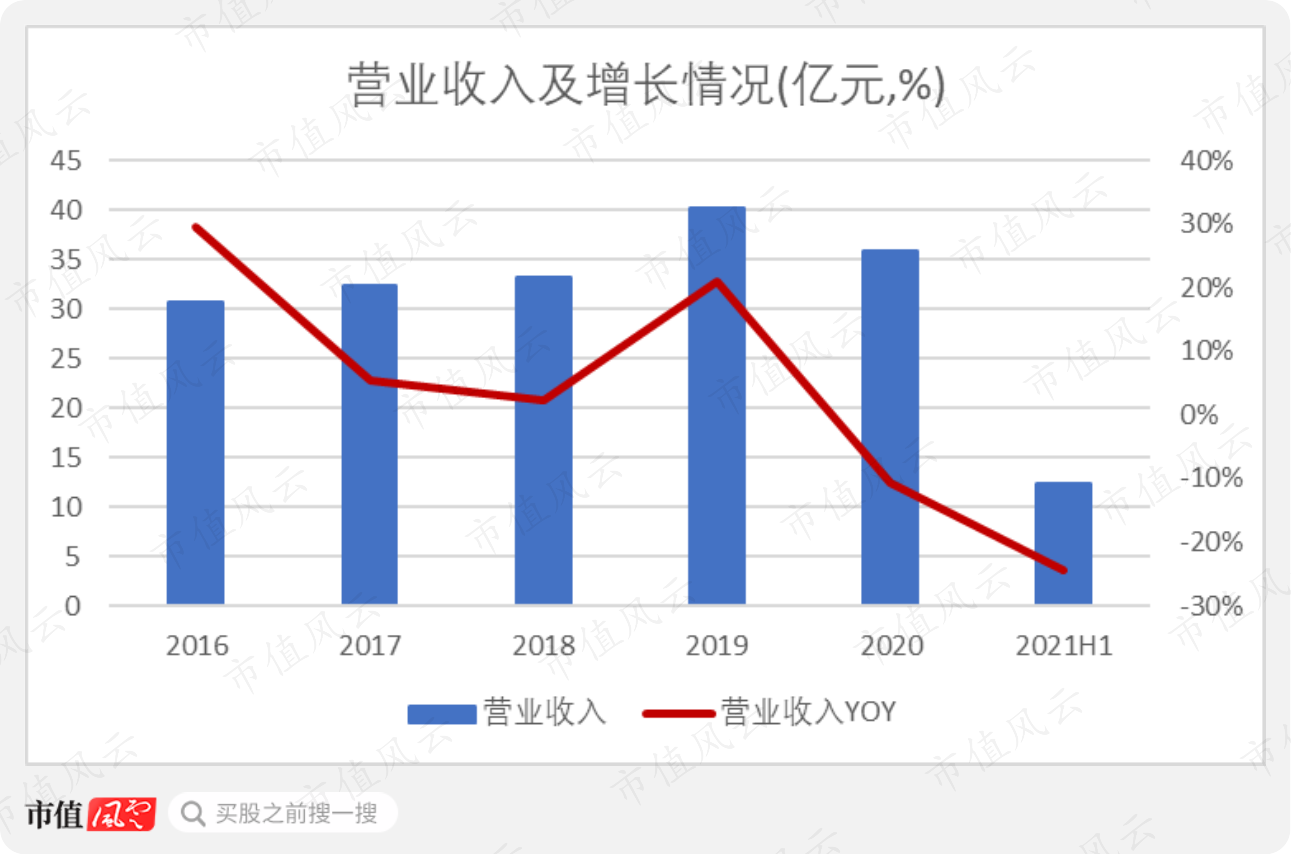 营业收入自2020年以来连续下滑,归母净利润则从2018年就走起下坡路,一直下滑至2020年。