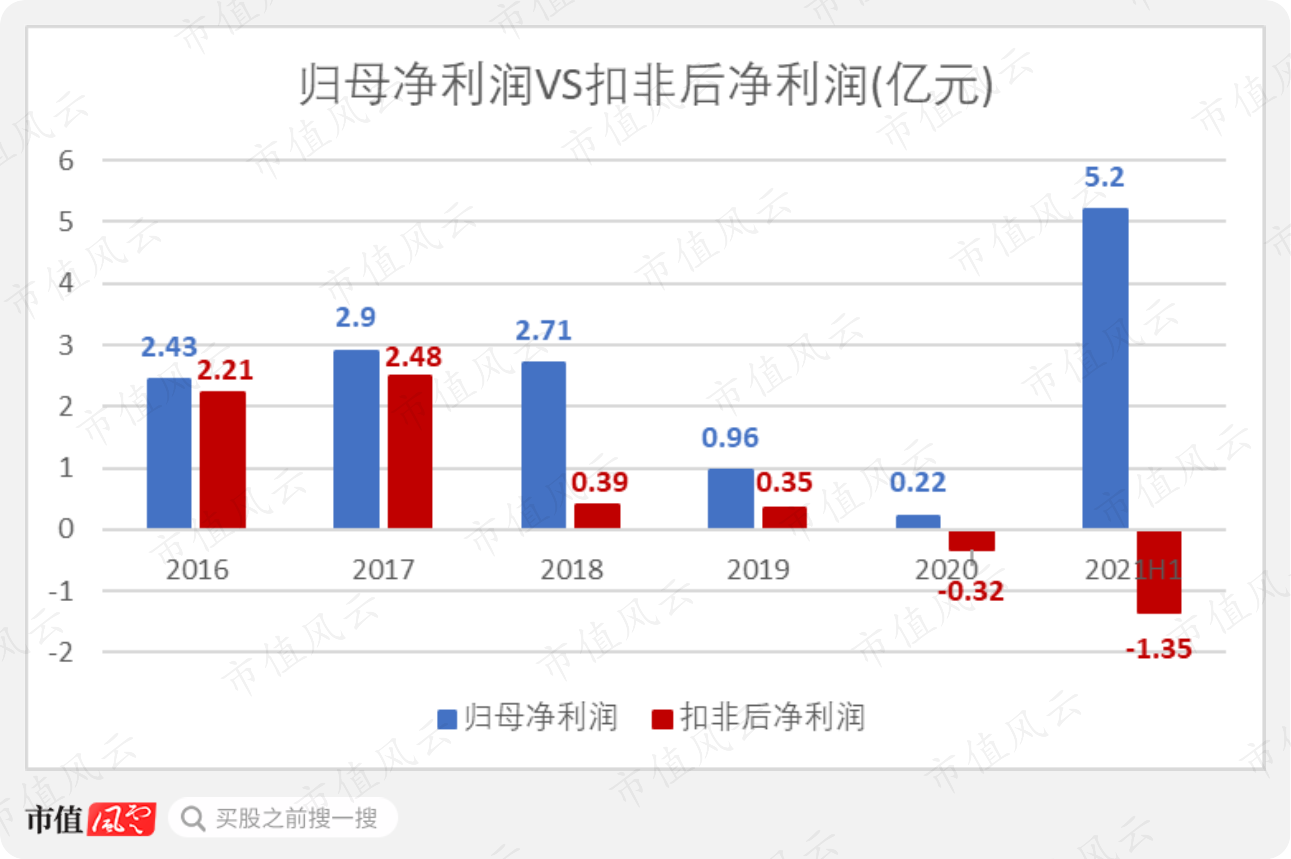 然而在2021年上半年,太安堂营业收入同比降幅为24.36%,总体业绩比2020年疫情封锁期还差,归母净利润却是去年同期的18.66倍,达到5.2亿元。