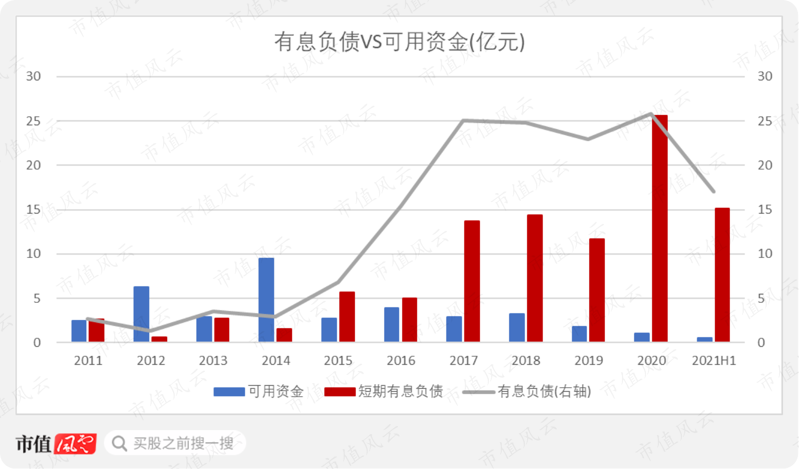 2015年起,太安堂账面可用资金,与短期有息负债之间的缺口不断扩大。随着卖资产偿还债务进程的深入,其有息负债有所减少,可用资金也随之萎缩。