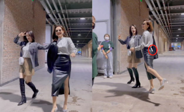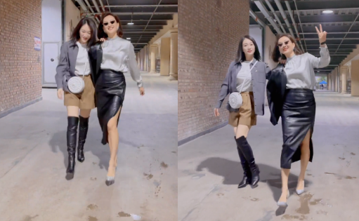 视频下一秒,李小冉把手搭在牛莉的肩上,对着镜头十分开心比耶,整个画面洋溢着欢乐的气息。在视频的最后一秒,牛莉不受高衩裙的影响,单腿抬高无意露出白净的长腿。最搞笑是暴露出还没剪的衣服标签。