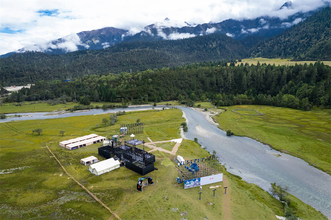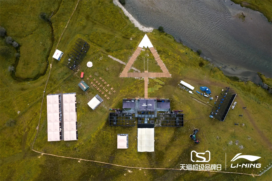 亮点:秀场以天地为背景,融于自然之中,群山环绕,借远处绵延雪山的风光建起三角形的回环构图,寓意着不断迸发的生命力。开放式场地让人能抛开束缚,直面内心,引发思考。