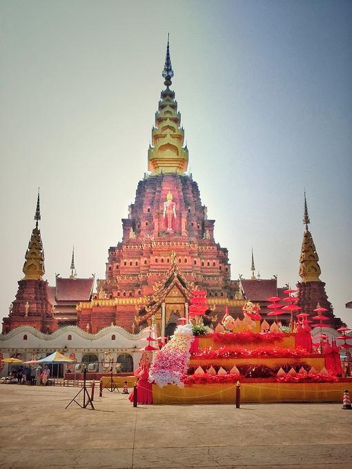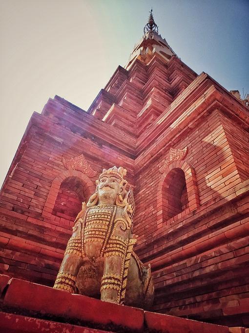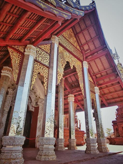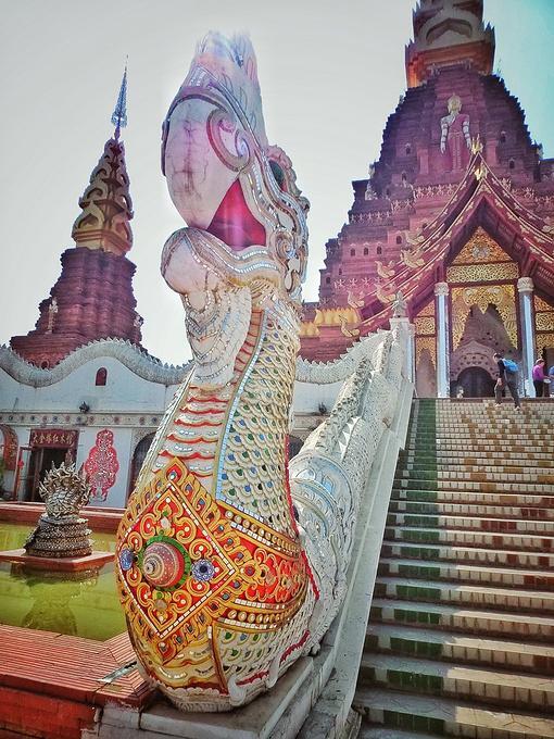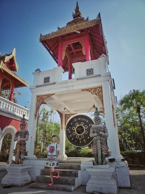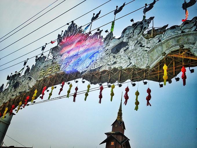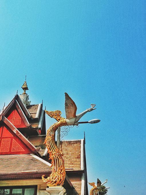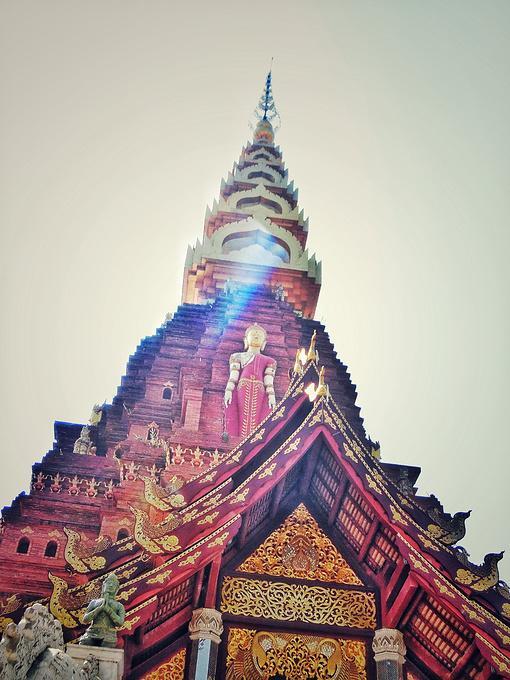“告庄西双景”是为傣语,译为“九塔十二寨”,行走在街道和小巷,东南亚各国的风味小吃、极具特色的民族工艺品、印有民族图腾的精美刺绣、制作精良的傣族服饰、充满佛教文化的木雕佛珠……让整个告庄充满了浓浓的东南亚风情。这里最引人注目的是中心位置的大金塔——造型精美、气势恢宏,早晨过来的时候,太阳还在云层后面,塔后的天空被神奇的分割成了两部分,一半蓝天,一半烟云,当太阳慢慢从空层后透露出一丝丝光线,炫光和塔顶的金色辉映,而塔身的红褐色在阳光下也具有相当的魅力——庄重、威严而神秘。