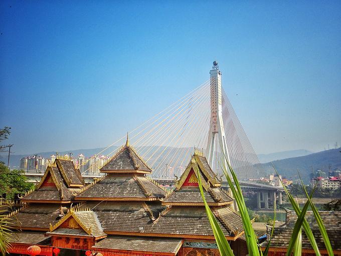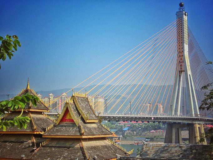 去往告庄的路上还要经过西双版纳大桥,它位于西双版纳州府景洪市,跨越澜沧江,是云南省目前跨径最大,桥面最宽的斜拉桥。