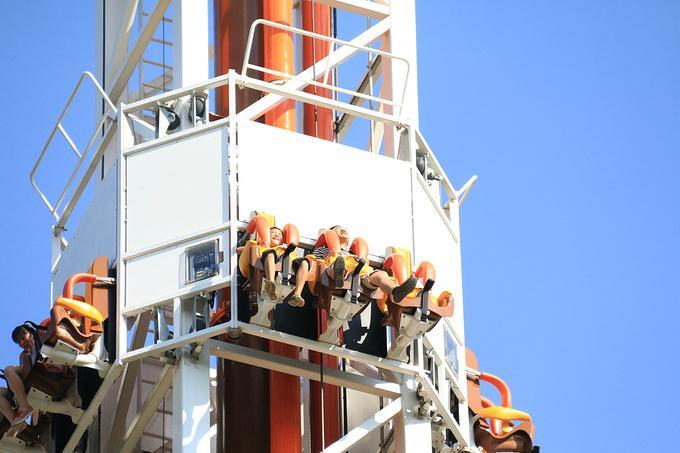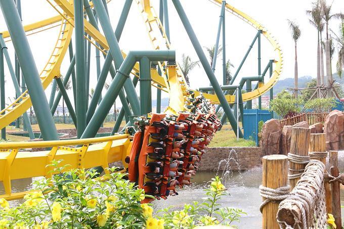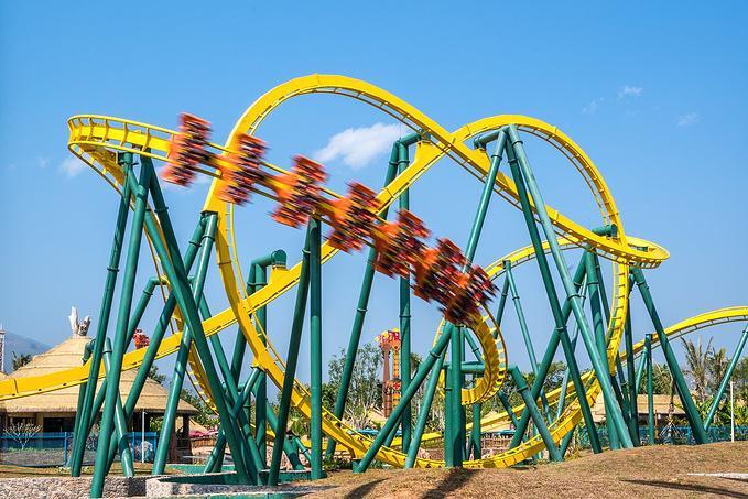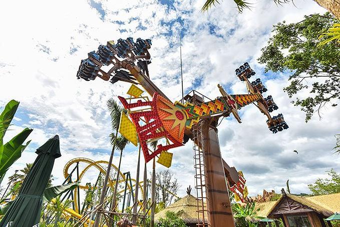 这个项目是“雨林飞鹰(心形过山车)”, “雨林飞鹰”的最高时速可达80公里,倘若能在激情的“爱心”上向心上人做一个充满勇气的爱情告白,那将何其浪漫!