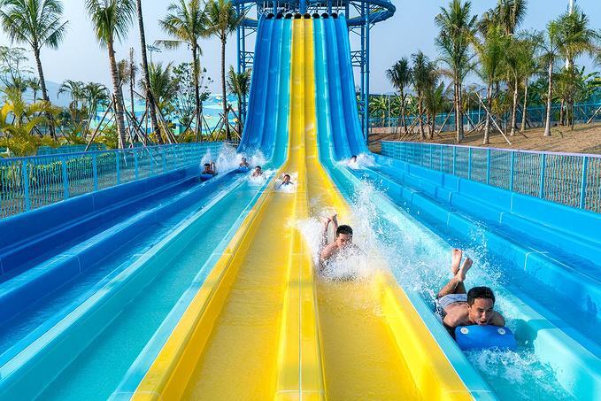 这里的游乐设备。没有你玩不到的,只有你想不到的。乐园的各种戏水设施和滑道设计全部取自雨林植物的外观特征,采用巨型的竹筒相互连接,形成了浓浓的雨林风情的滑水环境,万达水乐园是花朵主题的室外水乐园,包括12项水上游乐设施,粗大的藤条、巨型的蘑菇、纵横交错的树根和树枝,形成天然的戏水设施。