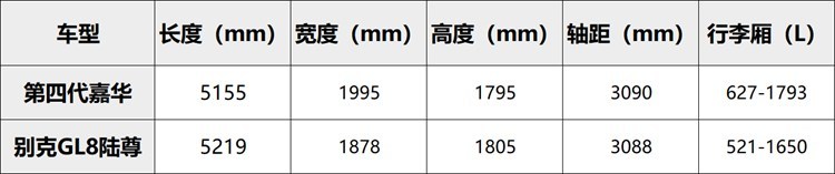 为了更直观地了解第四代嘉华、别克GL8的尺寸数据,我们直接列表对比: