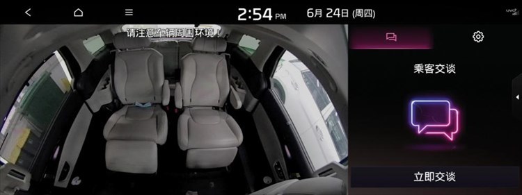 比如后排对话模式以及可视化功能,驾驶员通过车内中排的摄像头以及中控屏,可以观察到车内后排的情况,此时就可以通过驾驶舱麦克风及全车扬声器与后排乘坐人员之间畅通交流,既考虑到了需要照顾孩子的大家庭用户,也兼顾了商用顾客的多样化需求,当然同时也避免了分散驾驶员的注意力,增强了行车安全性。