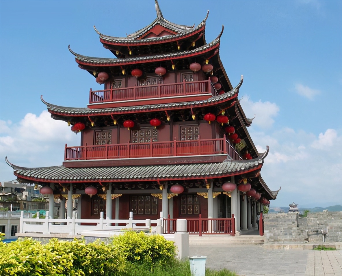 鹅城万室,错居二水之间;鹤观一峰,独立千岩之上。海山浮动而出没,仙圣飞腾而往来。古有斋宫,号称福地,鞠为茂草,奄宅狐狸,物有废兴,时而隐显。东坡先生南迁万里,侨寓三年,不起归与之心,更作终焉之计,越山斩木,溯江水以北来,古邑为邻,绕牙墙而南峙,送归帆于天末,挂落月于床头。方将开逸少之墨池,安稚川之丹灶,去家千岁,终同丁令之来归,有宅一区,聊记扬雄之住处,今者既兴百堵,爰驾两楹,道俗来观,里闾助作,愿同父老,宴乡社之鸡豚,已戒儿童,恼比邻之鹅鸭。何辞一笑之乐,永结无穷之欢。儿郎伟,抛梁东,乔木参天梵释宫。尽道先生春睡美,道人轻打五更钟。