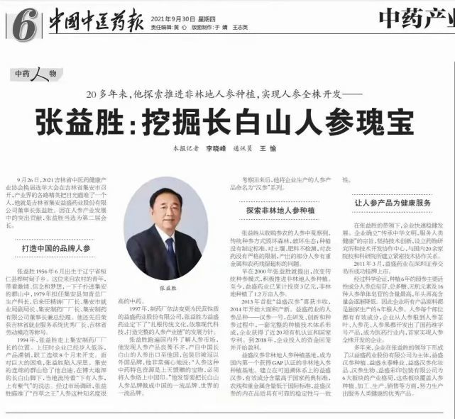 1997年,制药厂依法变更为民营性质的益盛药业股份有限公司,张益胜为益盛药业定下了"扎根传统文化,依靠现代科技,打造完整的人参产业链”的发展方针。