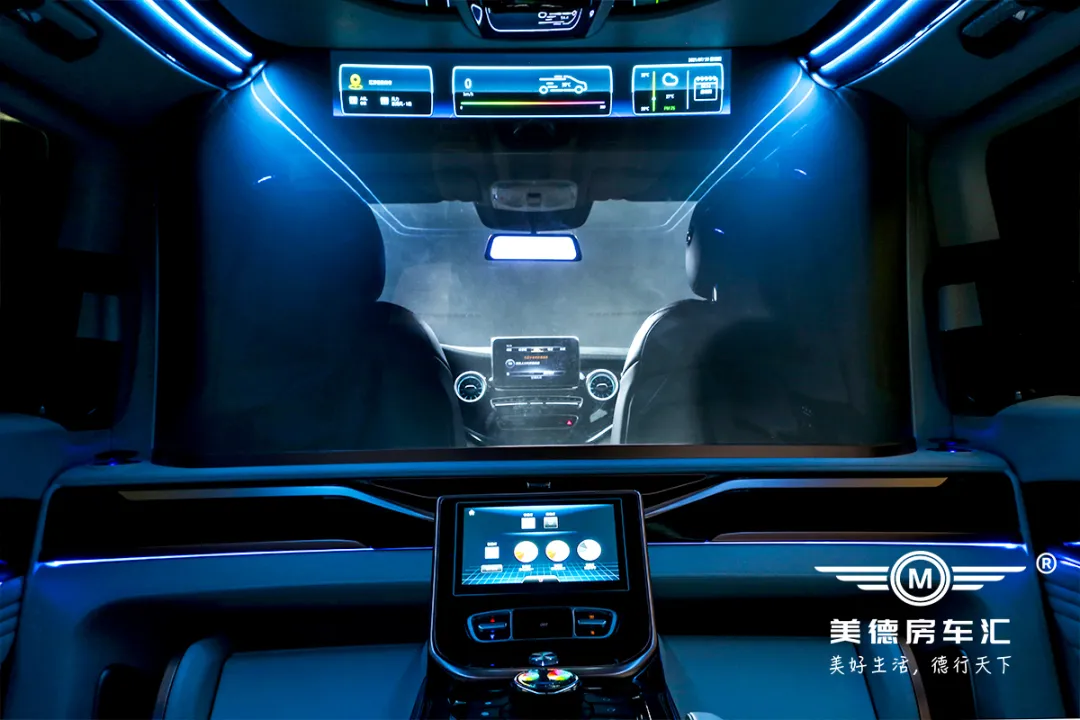 一进内舱就有一种香薰弥漫的感觉,能让您身心得以放松;Lorinser定制环绕流水灯,智慧光影&照明系统、满天星空顶,车内氛围浪漫绚丽、时尚大气,成就大美之境。