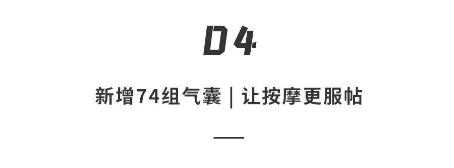 不仅如此,西屋高端按摩椅S700搭配了 74 组降落伞级材质的气囊,覆盖肩部、手臂、腰臀、小腿、膝部外侧和脚部,弥补了机械手的按摩盲点,包裹全身辅助挤压身体按摩。值得一提的是,西屋高端按摩椅S700新增了腰部、臀部气囊,一天久坐办公后的腰酸背痛、臀部发麻,也能得到很好的放松。