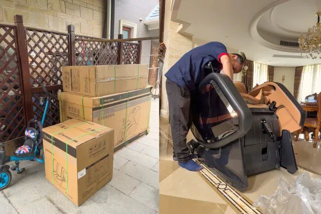 这款西屋高端按摩椅S700的快递是顺丰分了三个包装发过来的,来之前也会先联系测量尺寸,防止家门或者楼梯转角等不能进入,非常的贴心,免得开开心心购入按摩椅却不能进家门的尴尬。三个包裹加起来接近300斤,确实不轻,同时也有专门的安装师傅上门安装。