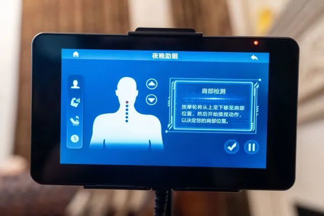 按摩启动之前的体型检测也非常仔细,肩部检测、身体其他部位如背部、臀部的检测都非常精准。