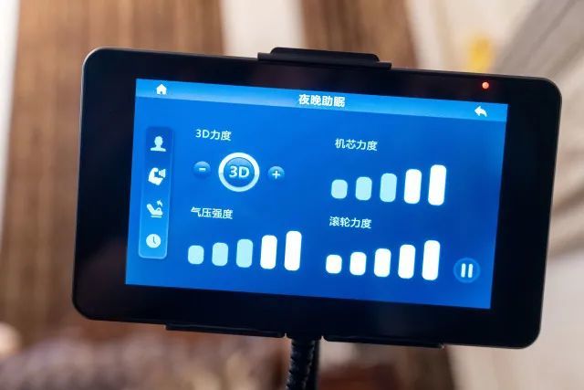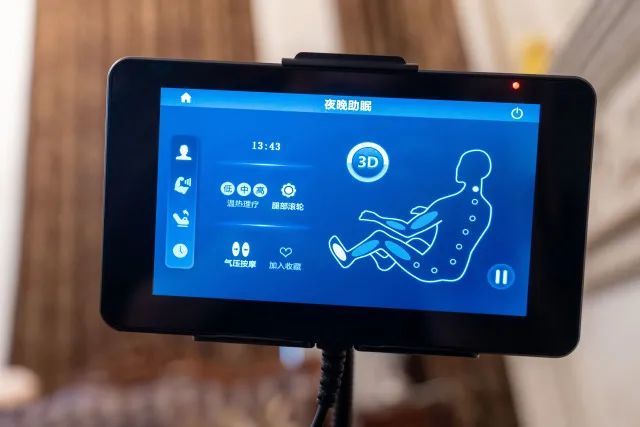 点击屏幕上的各种小图标,可以调出对应的调节页面,比如椅背的升降、脚部的升降、各种坐躺姿势等等,真是 VIP 般的待遇;按摩的力度也是可以分开调节适用于全家;按摩时间也可以调整,这样就可以定制你的私人按摩了。