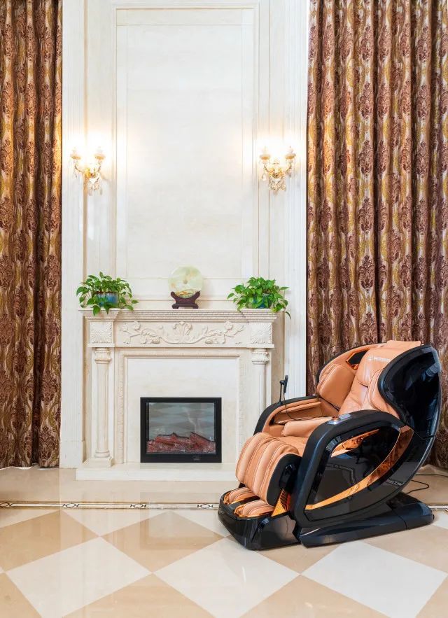 这款西屋高端按摩椅S700的配色和家里很和谐,这款配色是“鎏金黑”,比较适合我家这种暖色系的简欧风,还有一款叫“冰晶白”,适合现代轻奢风的家居设计。