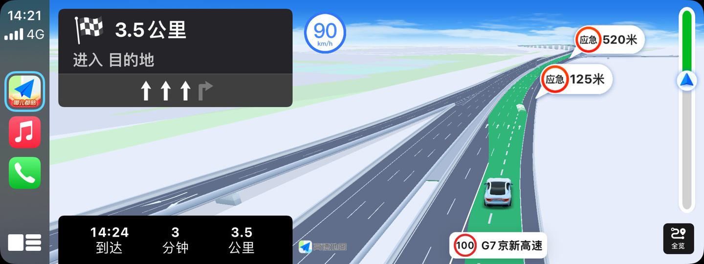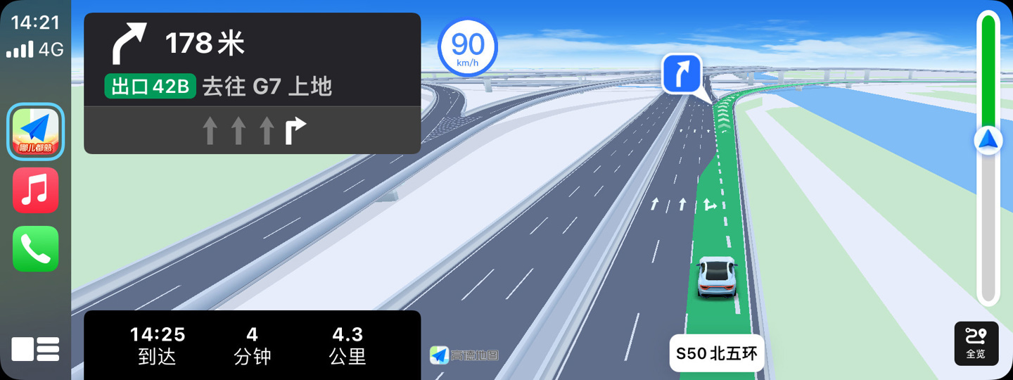 高德高清导航功能此前已经支持天津市、重庆市、浙江省、江苏省、广东省、四川省、河北省,目前已开放支持上述 120 多个城市的高速和快速路。官方表示,目前该功能已经适配大部分苹果 iPhone 和安卓机型,同时支持苹果手机的 CarPlay 功能,将 3D 导航画面投射至汽车中控屏幕。