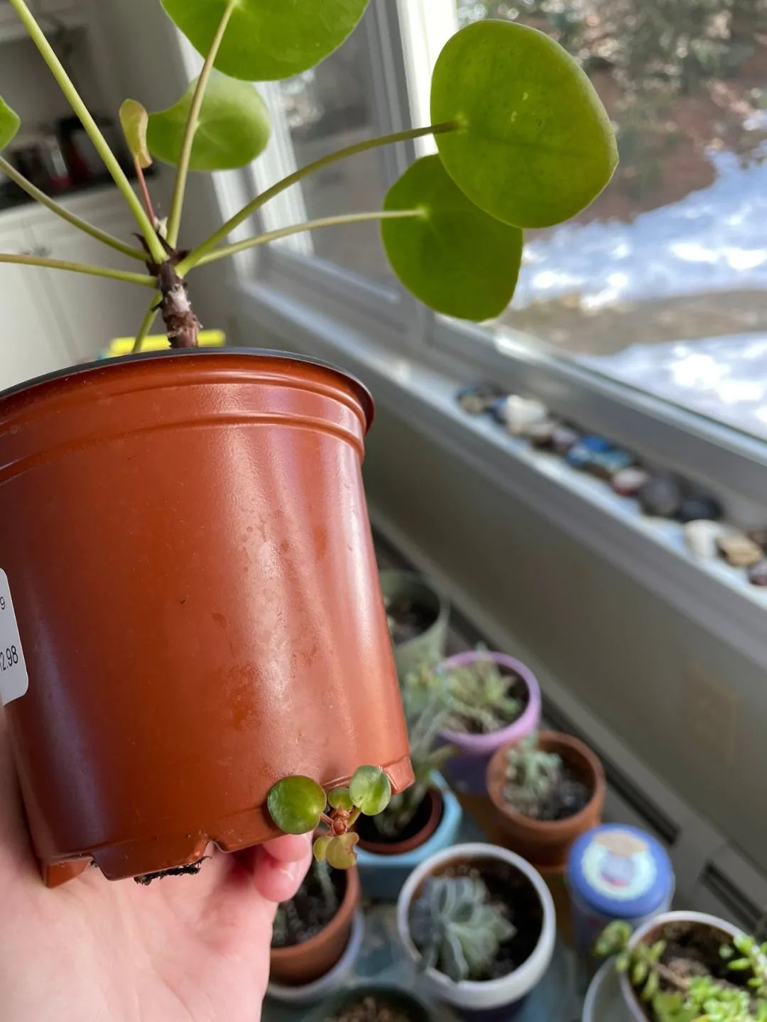 镜面草(Pilea peperomioides Diels)是原产于我国云南地区的,在野外就很少看到,它已经变成非常流行的一种室内观叶植物,也是网红植物的一员,它在室内灯光下都可以维持存活,有适当散子光就可以长得更快。